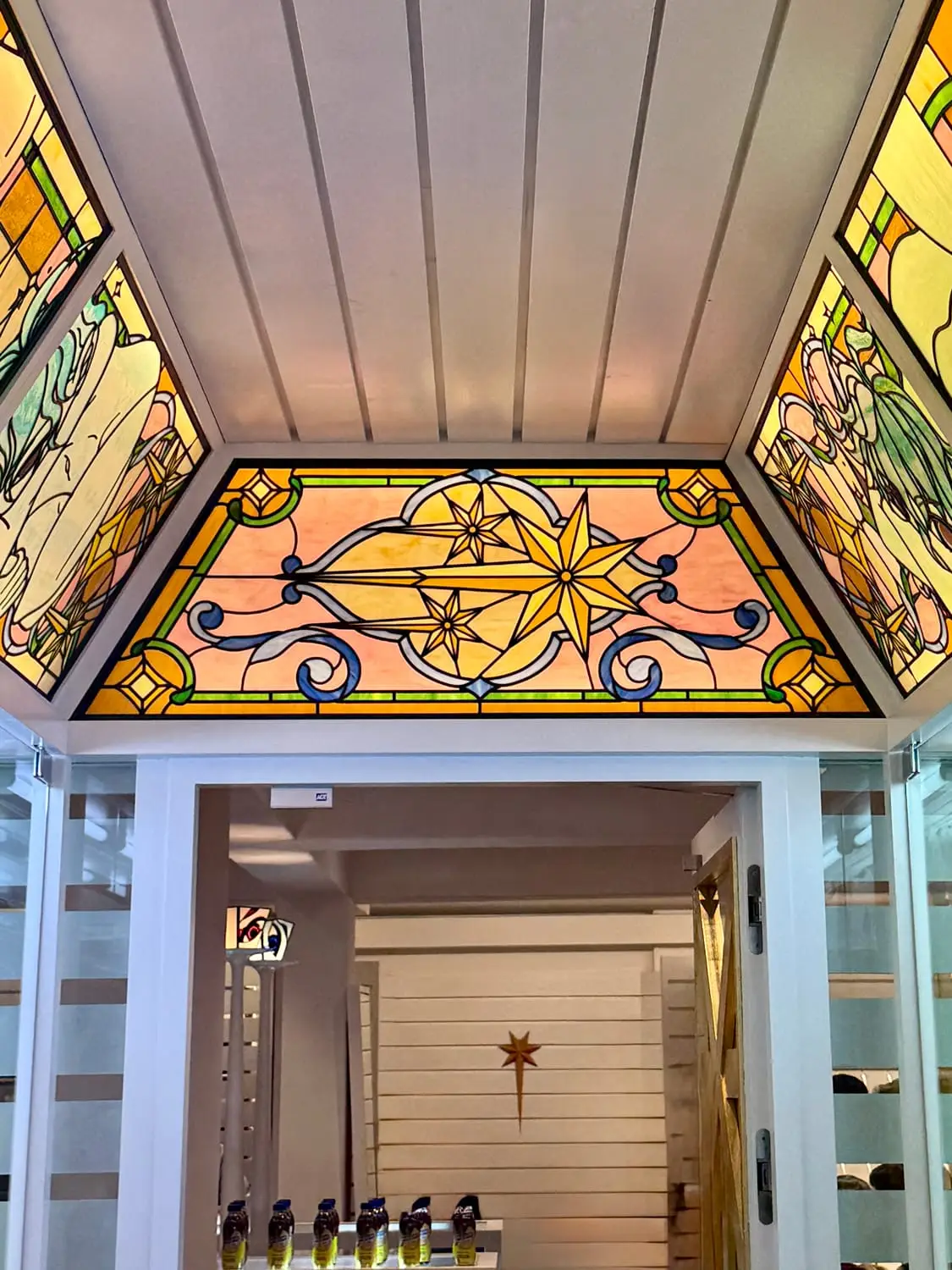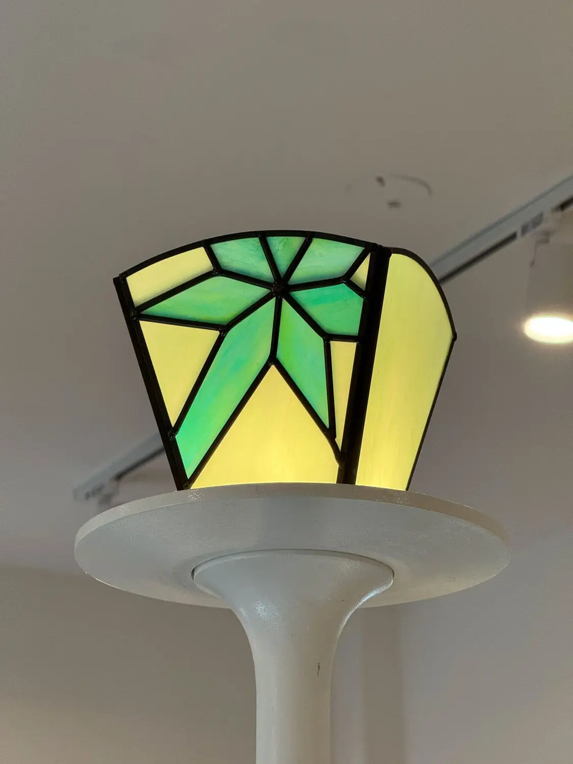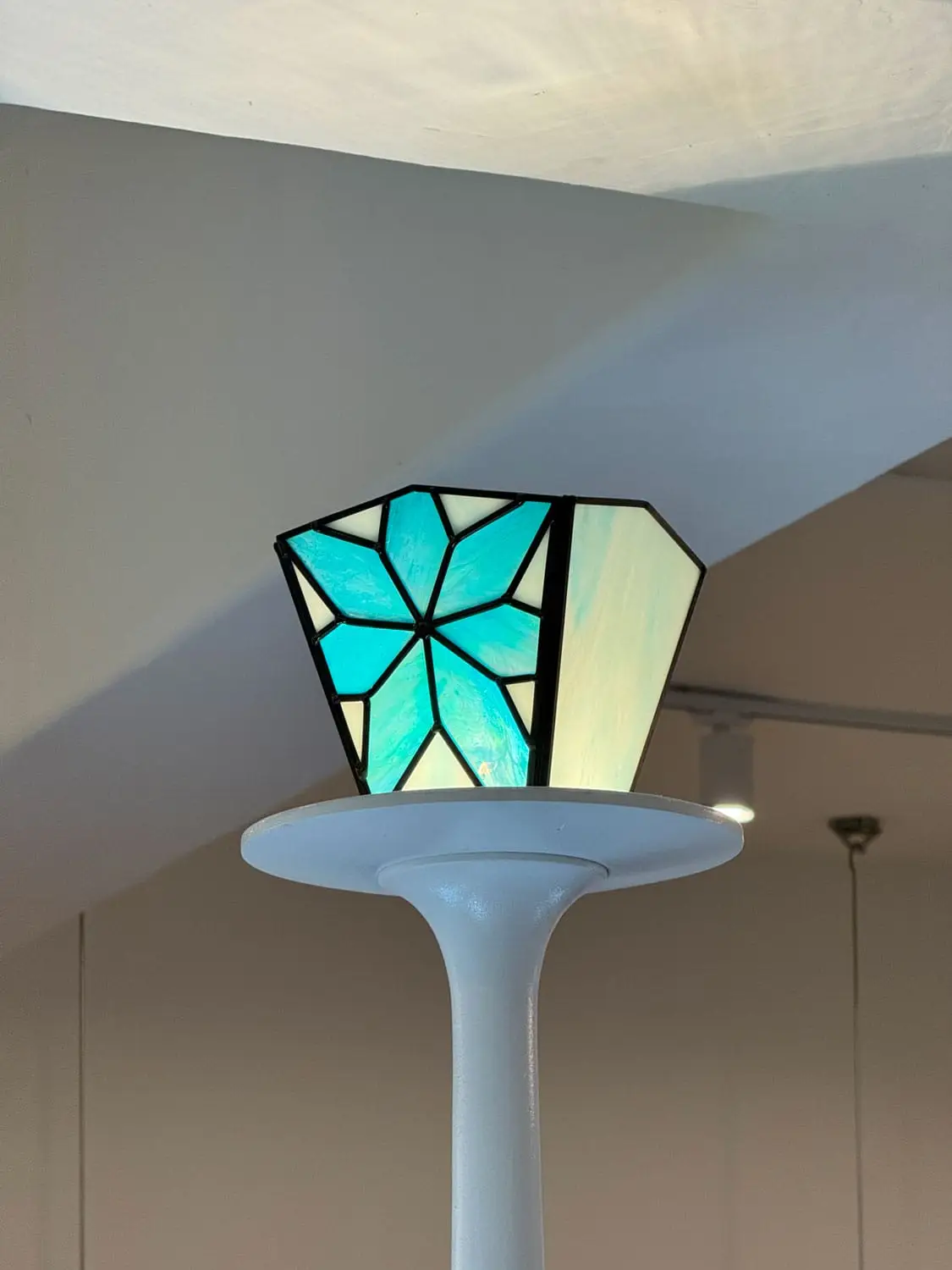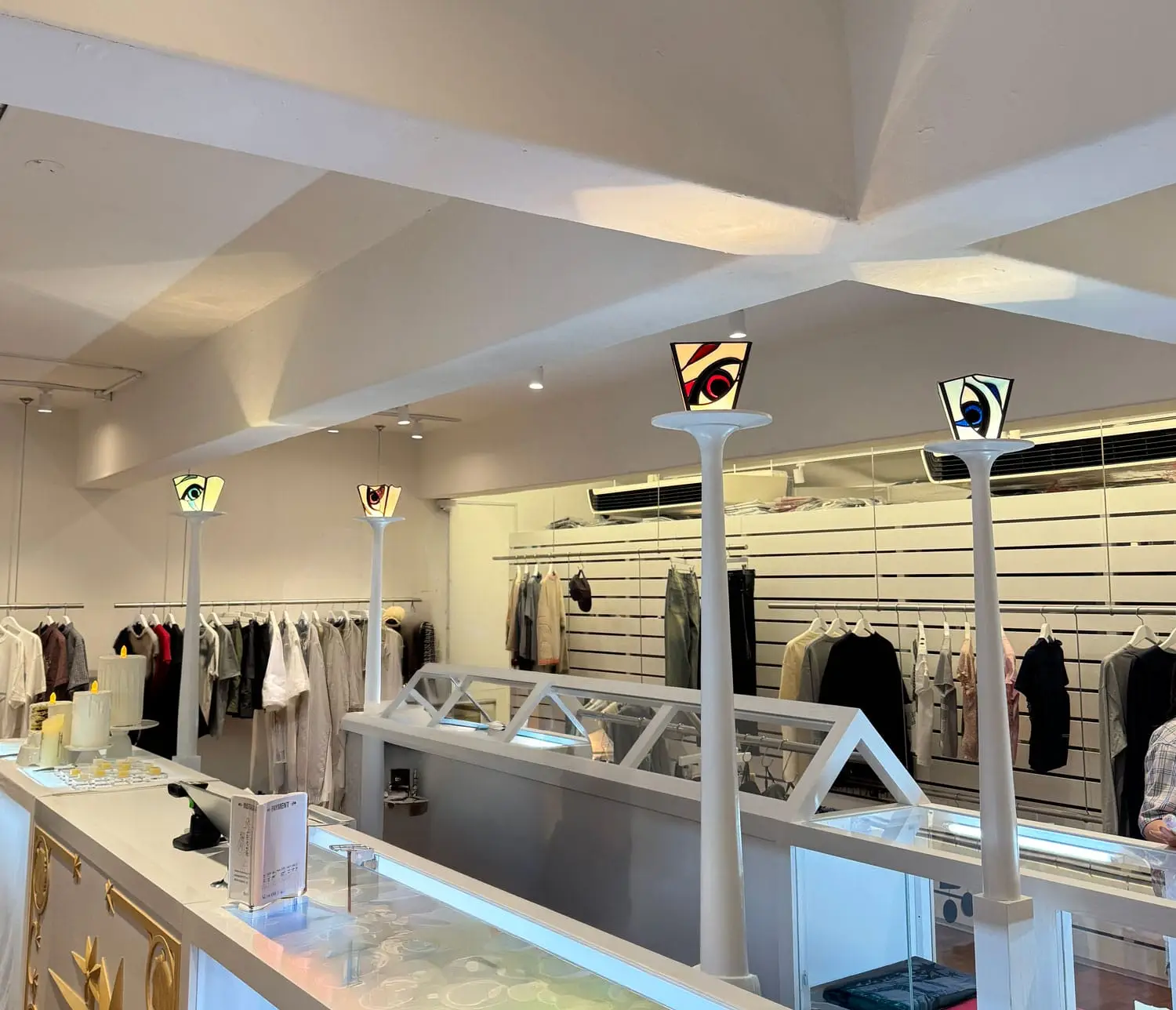 성수 ‘나이스고스트클럽’ 스테인드글라스_2 By : 박 진영 2026년 04월 27일2026년 04월 27일 • 4명의 인물들의 머리카락은 펄감이 있는 유리를 사용해 캐릭터가 더욱 도드라지도록 연출했고, 눈동자와 눈 아래 부분은 비슷하면서도 서로 다른 유리를 사용해 깊이감을 더했습니다.• 속눈썹과 배경의 별 모양 패턴은 동판을 납땜하여 입체감을 주었습니다.• 2층에 이어 1층을 또 다른 분위기로 표현할 수 있어 즐거웠습니다.✴︎ Space design: @c_o_m.kr
