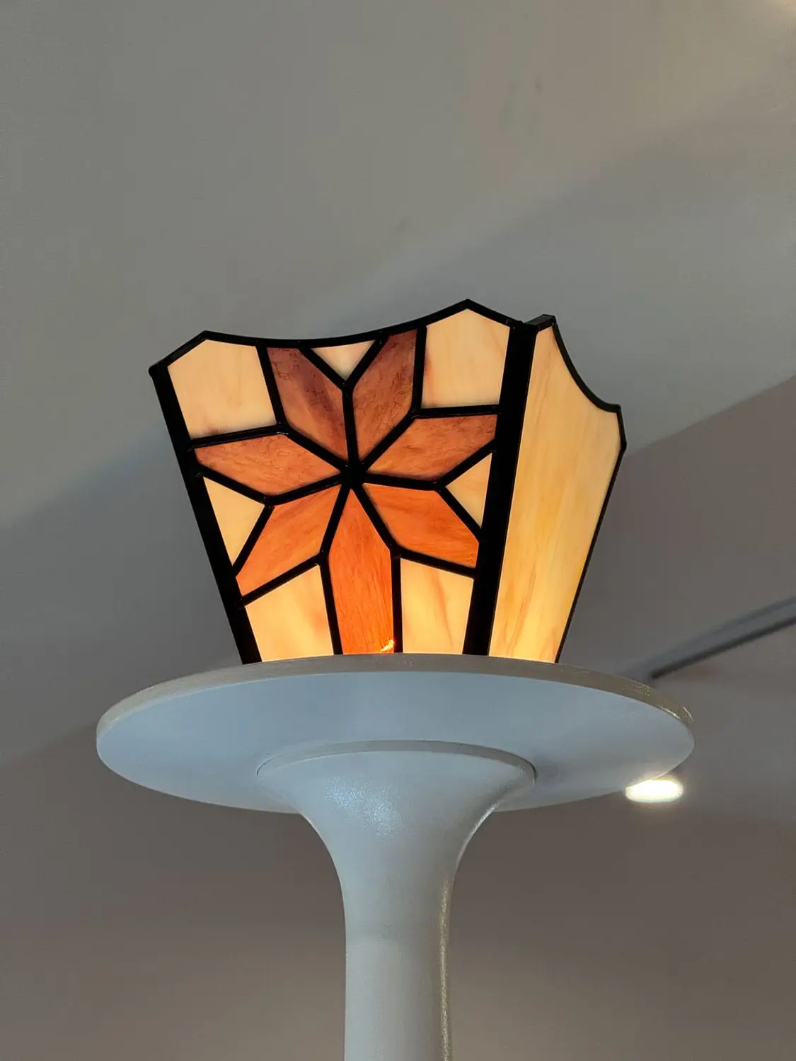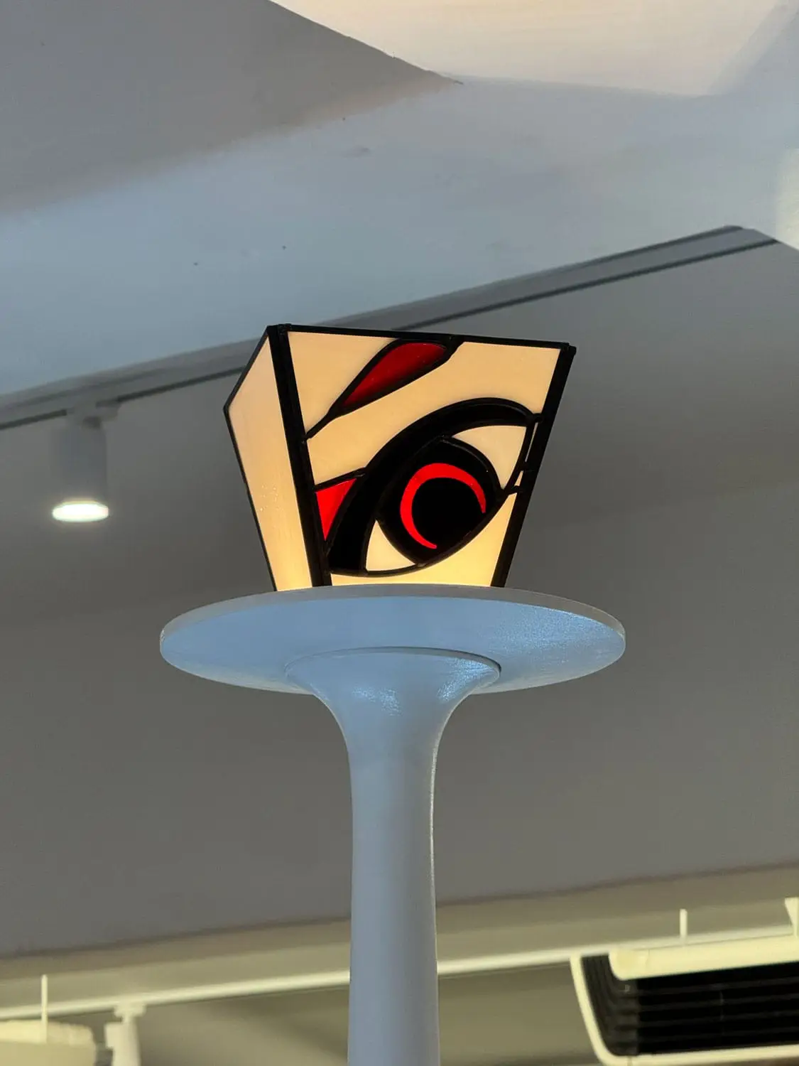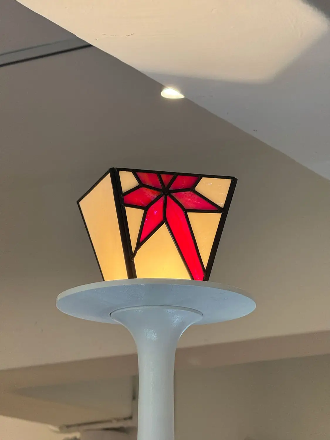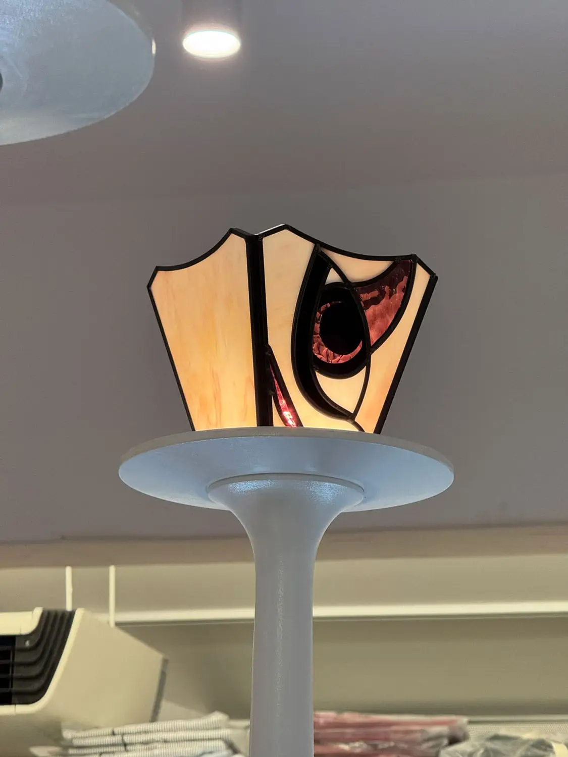 성수 ‘나이스고스트클럽’ 스테인드글라스_2 By : 박 진영 2026년 04월 27일2026년 04월 27일 • 4명의 인물들의 머리카락은 펄감이 있는 유리를 사용해 캐릭터가 더욱 도드라지도록 연출했고, 눈동자와 눈 아래 부분은 비슷하면서도 서로 다른 유리를 사용해 깊이감을 더했습니다.• 속눈썹과 배경의 별 모양 패턴은 동판을 납땜하여 입체감을 주었습니다.• 2층에 이어 1층을 또 다른 분위기로 표현할 수 있어 즐거웠습니다.✴︎ Space design: @c_o_m.kr